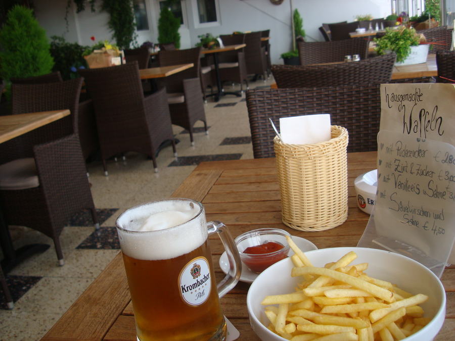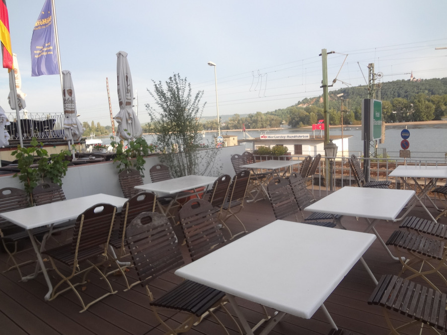 거리를 구경하며 천천히 걸어 라인강변에 있는 카페 로 들어가서