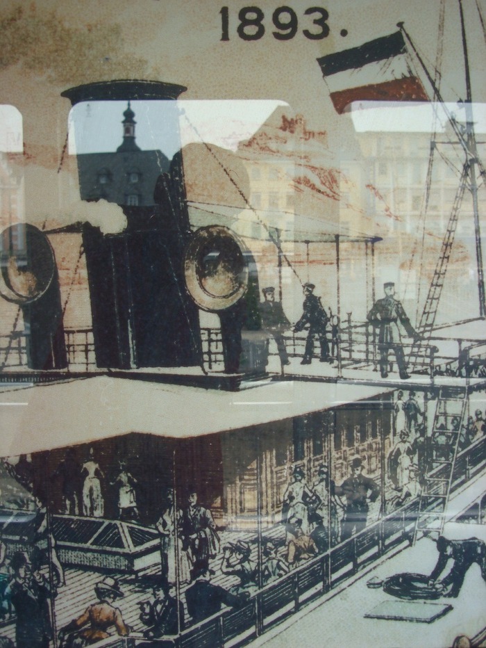 배에 오르니 노선도와 사진 들이 붙어 있는데 1,893년 이라는 연도가 붙어