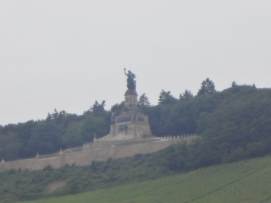 오른쪽 산 등성이에 거대한 청동 구조물인 게르마니아 여신상 이 보입니다.