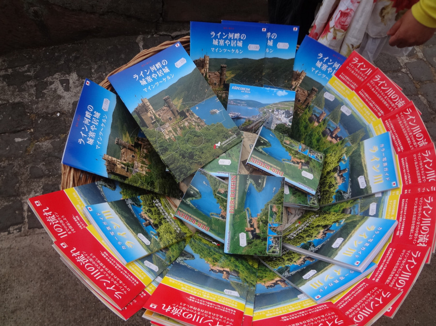 라인강 유람 안내책자를 살펴보는데 특이하게도 일본어 로 된 책자들이 가장 많은 것을