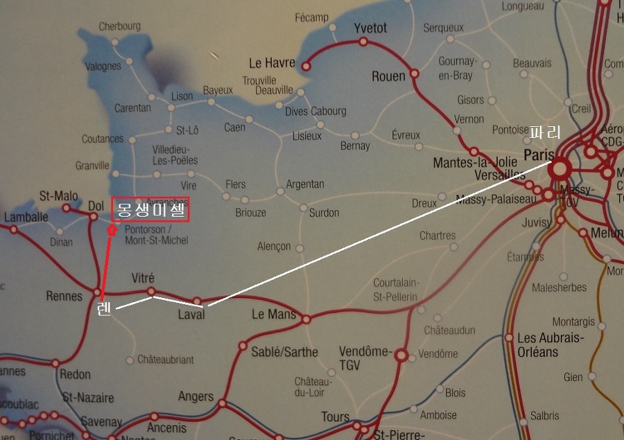 있는 몽생미셀 Mont St. Michel 로 가기 위해 우선 파리 로 가는 기차를