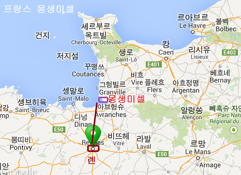 여행전에 아고다와 구글어스에서 현장 지도 를 보았는데 몽생미셀 섬 안에 있는 호텔은