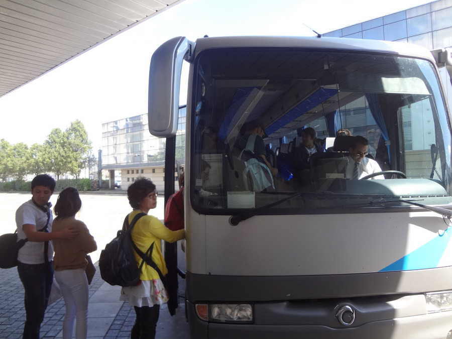 마침 첫번째 버스 정면에 몽생미셀 Mont St. Michel 이라 적혀있기로 배낭을 짐칸에 넣고