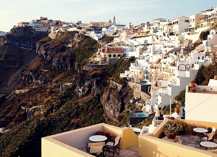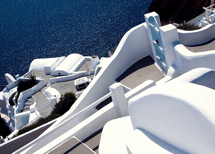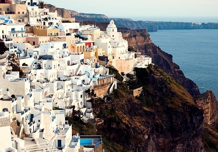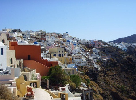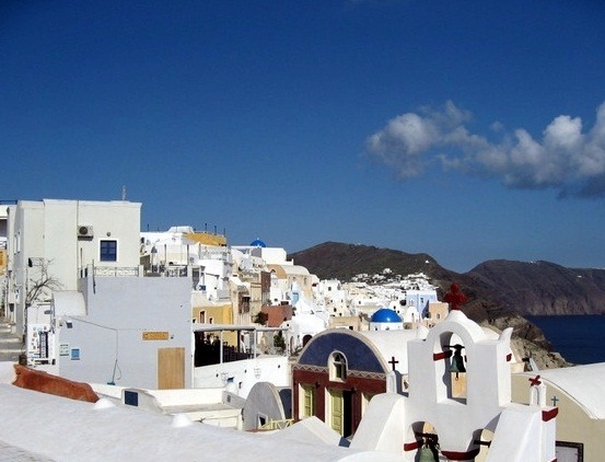 주로 흰색의 깔끔한 집 들이 계단식으로 언덕을 뒤덮었는데 카페와 호텔 들이 아름 다운
