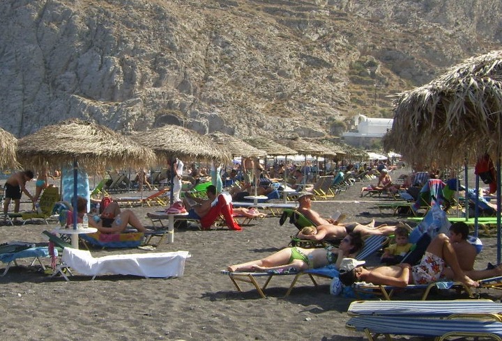 해변은 상당히 넓어서 파라솔 ( 눕는 선탠의자 포함 ) 도 많고 해수욕객 도 넘치는데