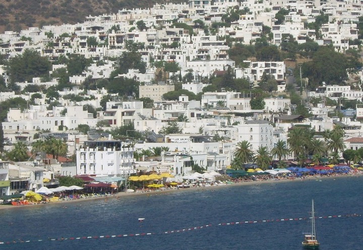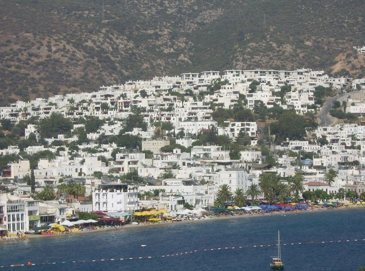 보드룸 성채 에 올라 도시를 바라보노라니 언덕에서 해변까지 집들이 빼곡히 들어 찼는데