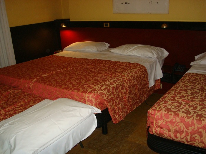 울 마눌이 4인실 (침대만 4개, 화장실은 있으나 아주 좁다!) 호텔방에서 휴대한 전기냄비
