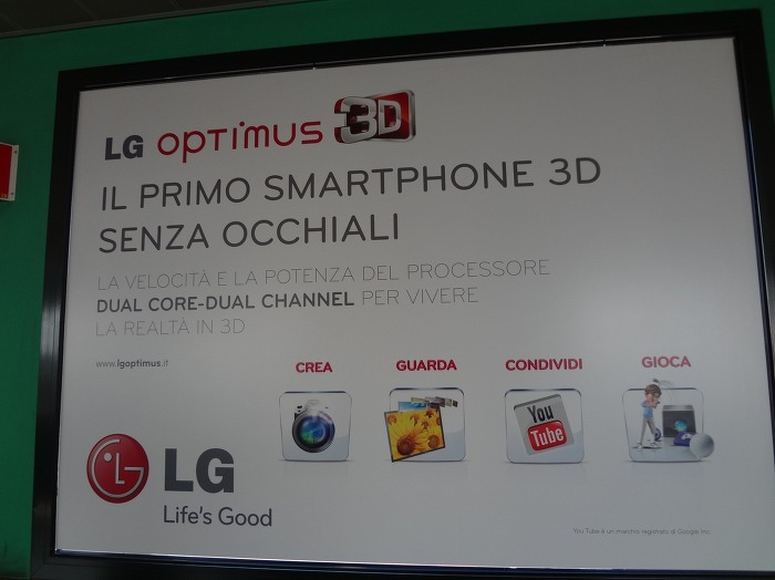 밀라노 말펜사 공항 복도에 LG 휴대폰 광고판 이 보이는데..... LG를 “ Life's Good"
