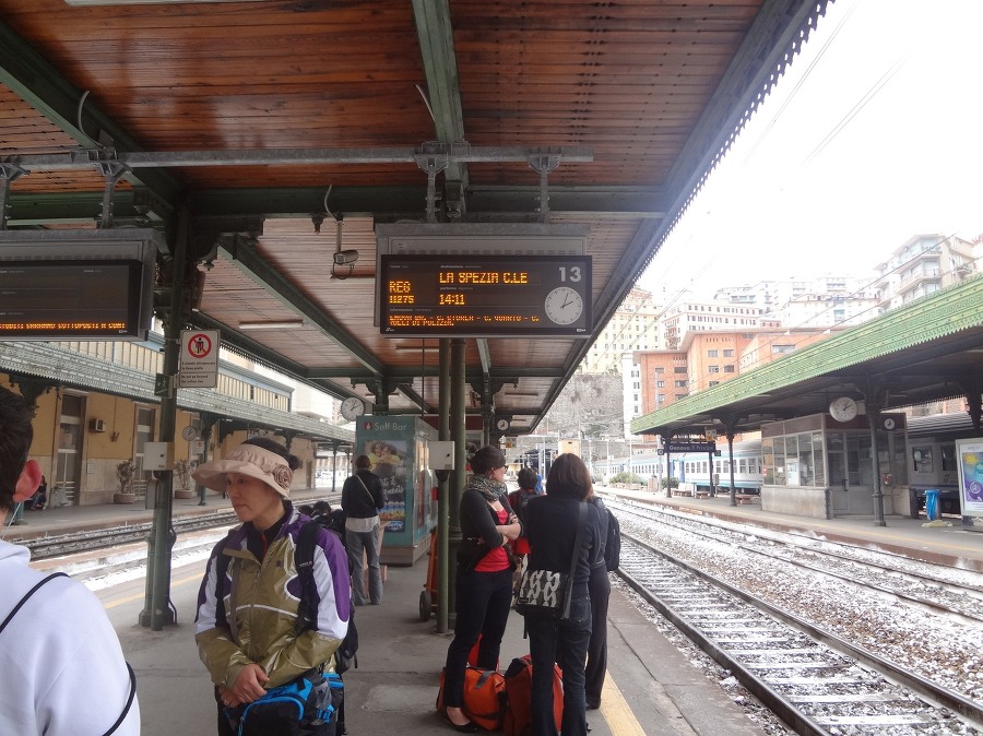 제노바 프린치페역 으로 들어가 유인 라기쥐 라커 에 들러 배낭 하나당 5유로씩을 내고