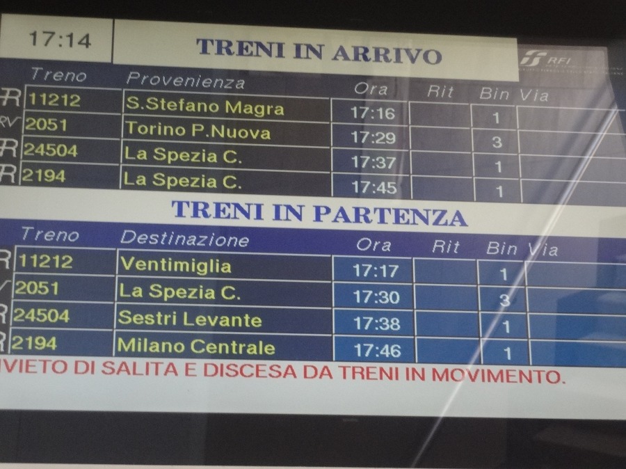 전광판에서 베르나차 Vernazza 를 확인하니......