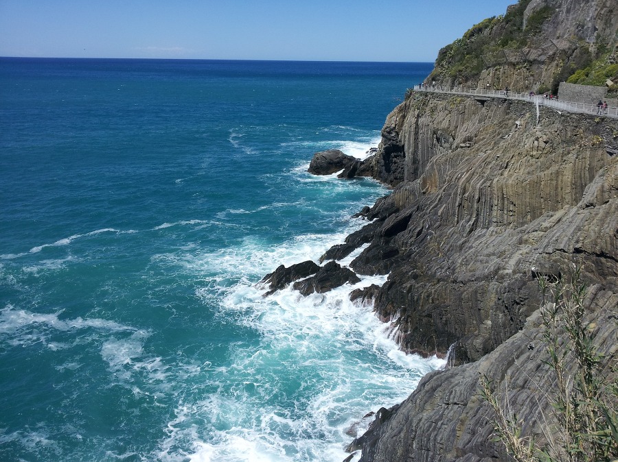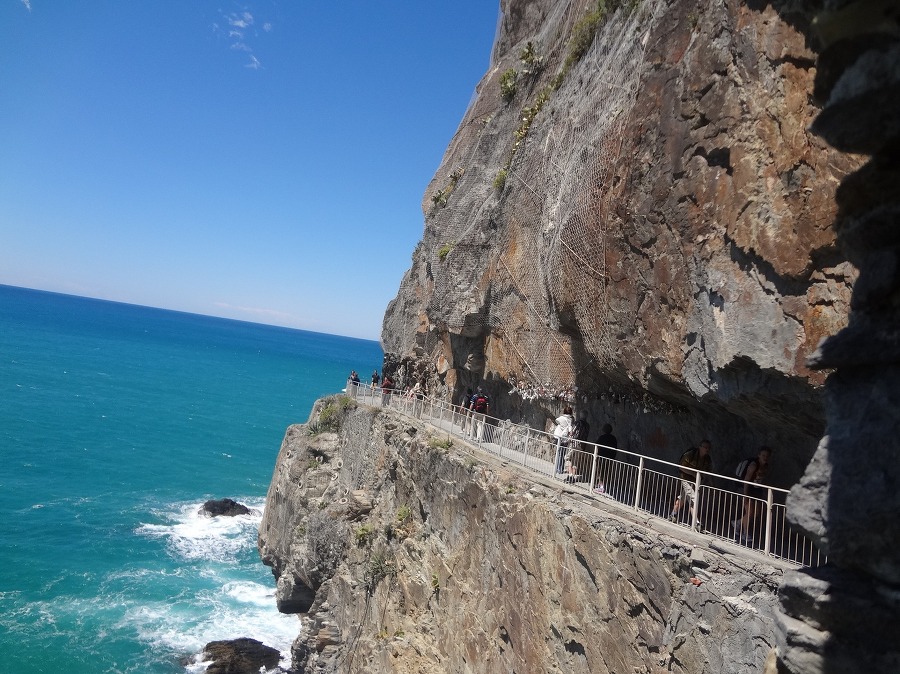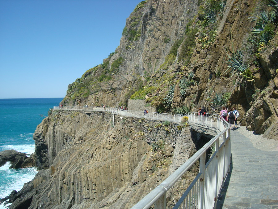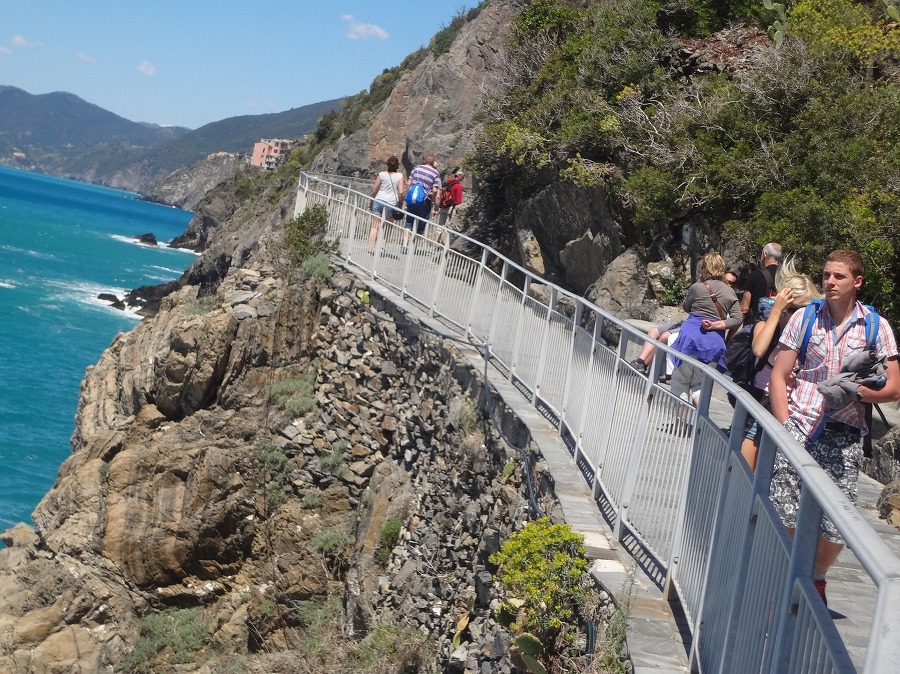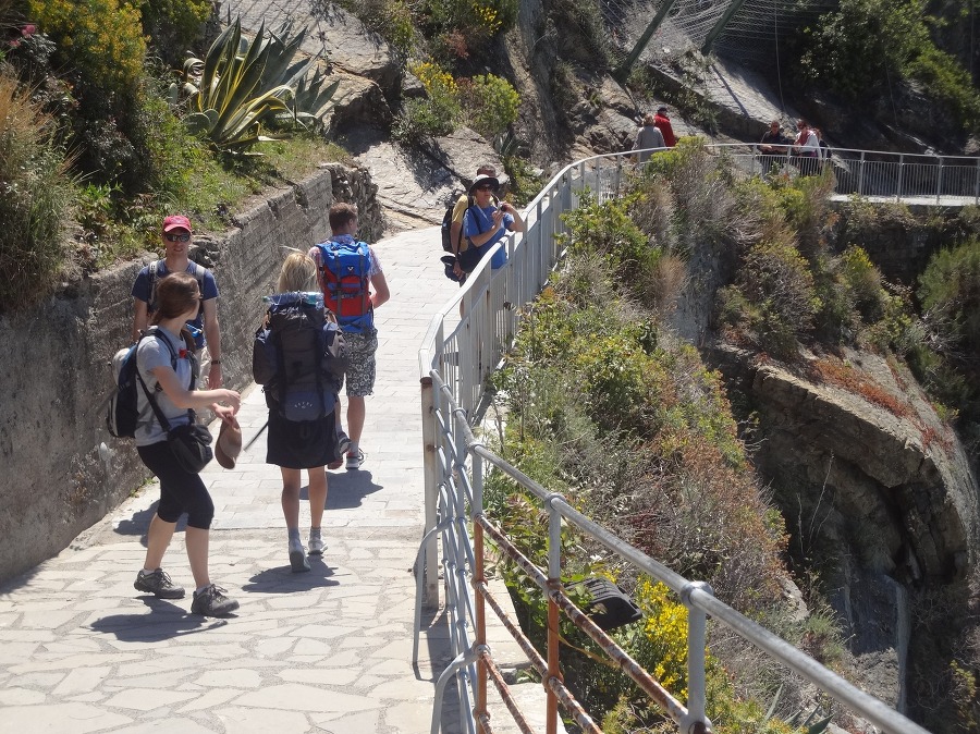 나머지 사람들은 교대로 마나롤라 마을로 가는 바닷가 절벽에 난 산책길 을