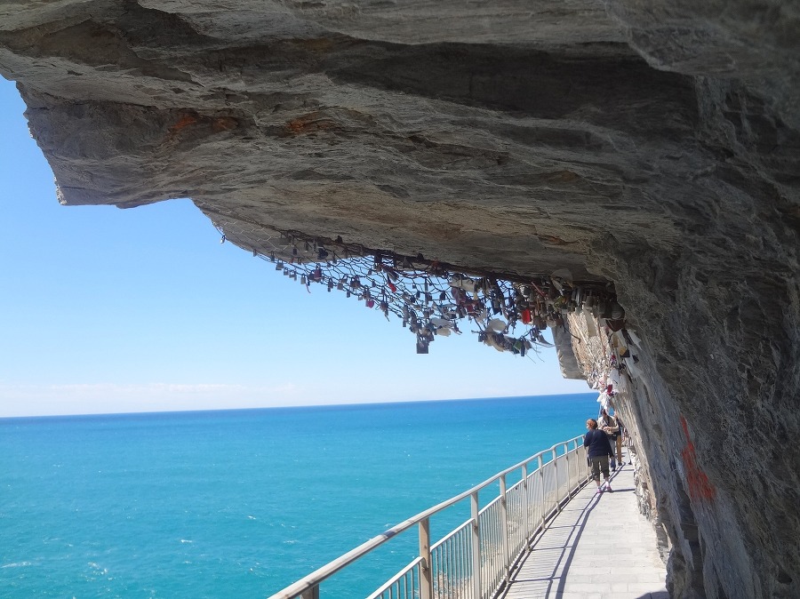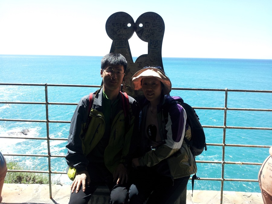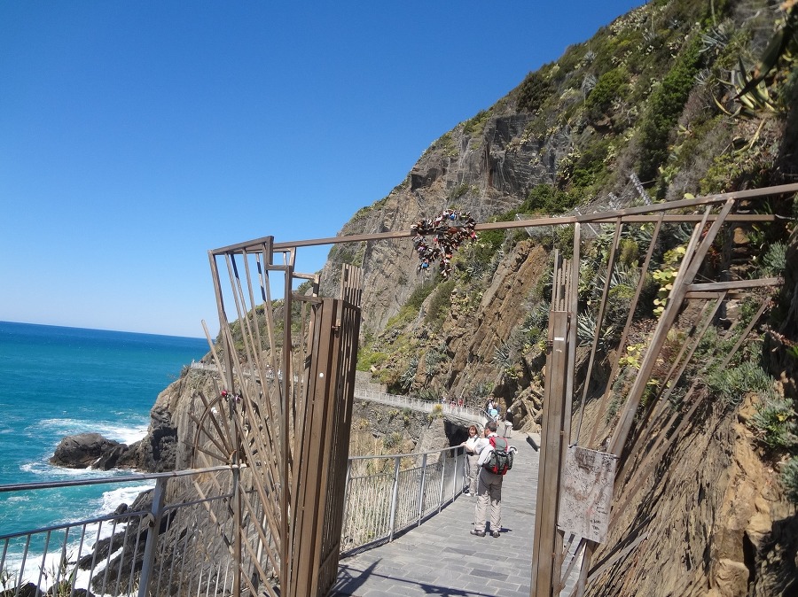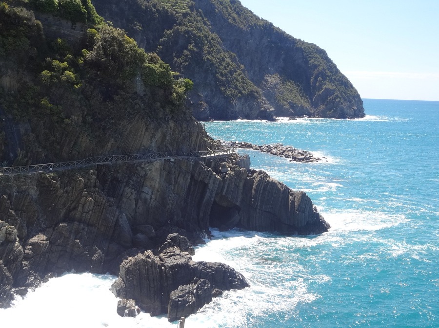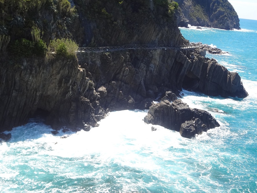 나머지 사람들은 교대로 마나롤라 마을로 가는 바닷가 절벽에 난 산책길 을