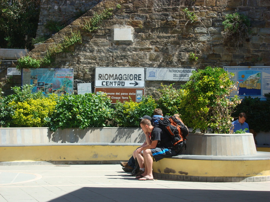 리오 마조레 에 내려서는 4명의 일행이 돌아가며 배낭을 지키고는.....