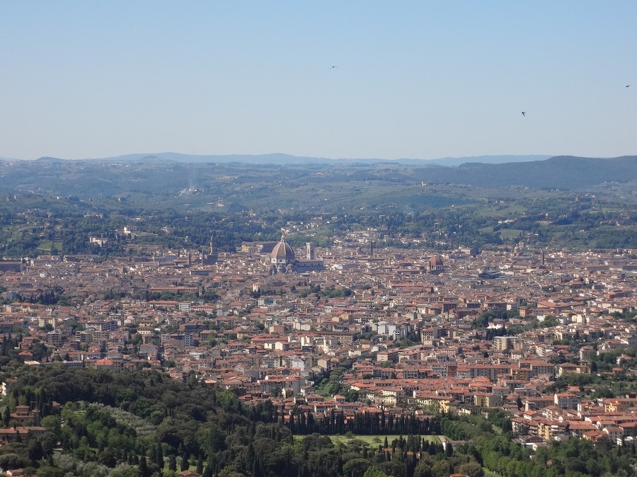 이른바 전망대 Funto Panoramico 에 서니 거대한 숲과 벌판 너머로 도시 피렌체 가