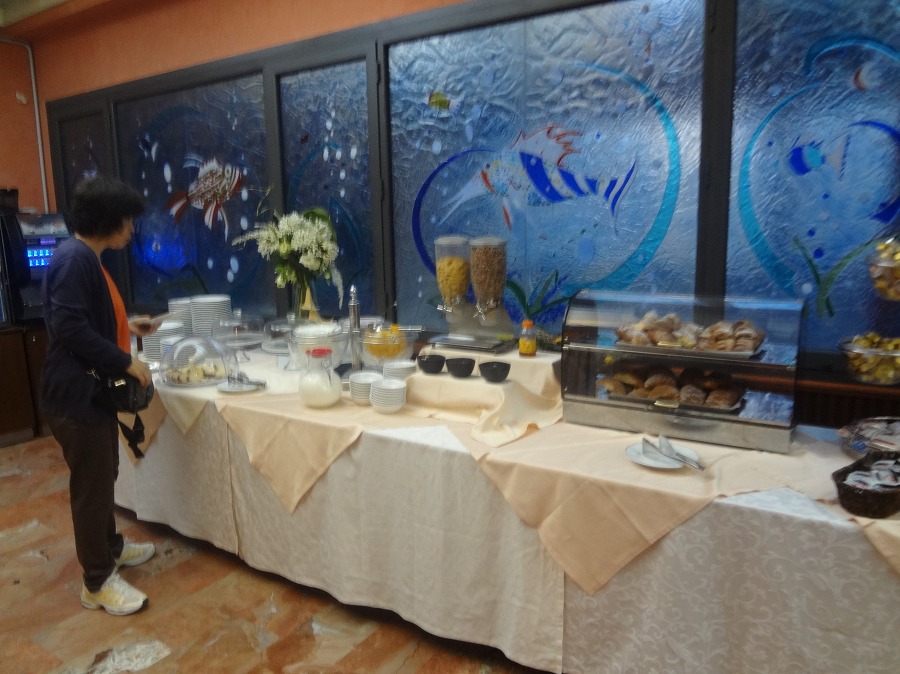 레스토랑으로 내려가니 뷔페식 아침 이 차려져 있어 오랜만에 호사를 합니다.