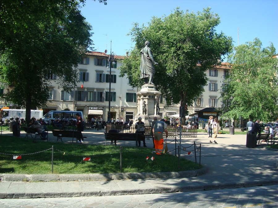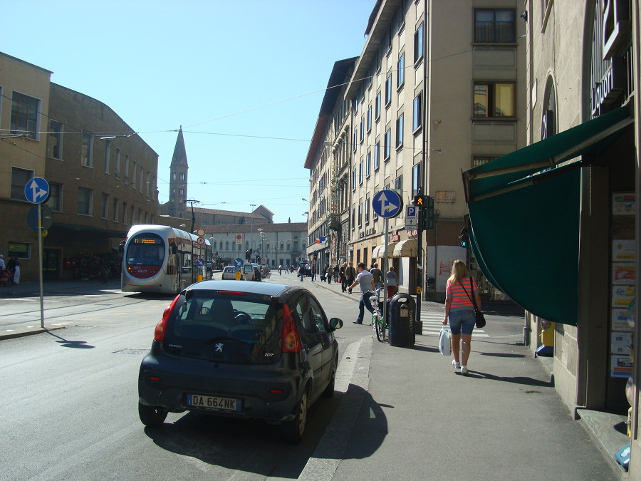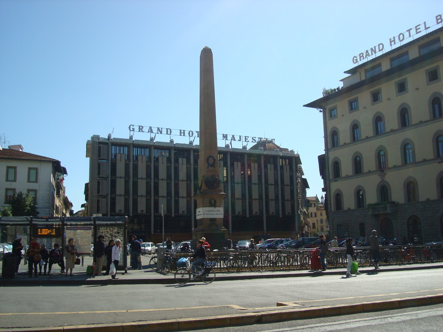 오벨리스크 비슷한 기둥이 서있는 역 광장 을 지나 산타마리아 노벨라 교회 를 끼고