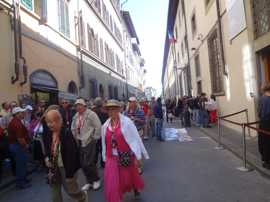 시뇨리아 광장 에 서 있었던 미켈란젤로의 다비드 조각상 을 보기 위함 일러나?