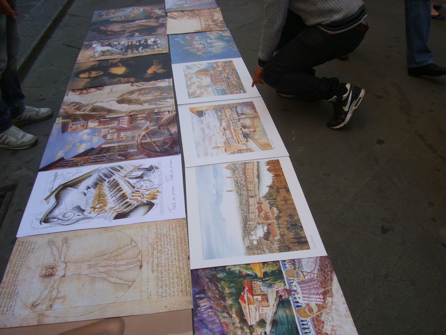 길 바닥에는 두오모등 그림 을 전시해 놓고는 파는 사람들이 보입니다.