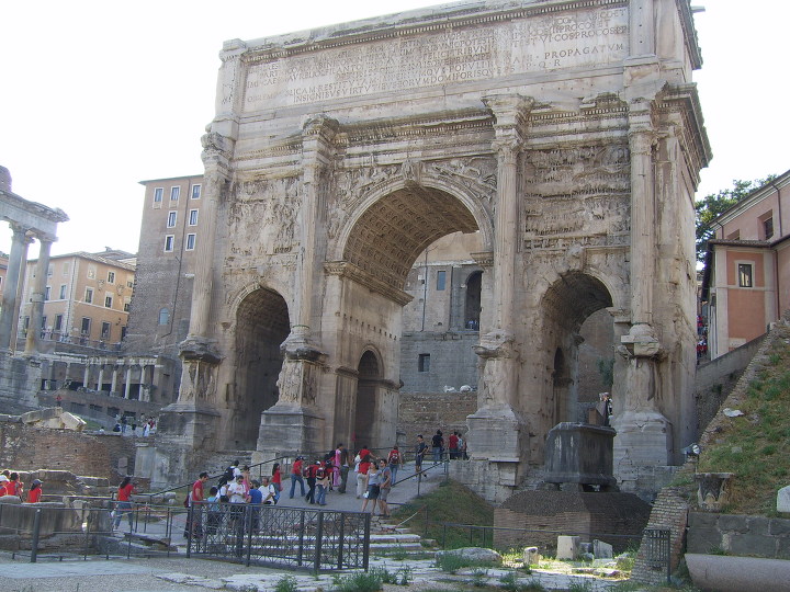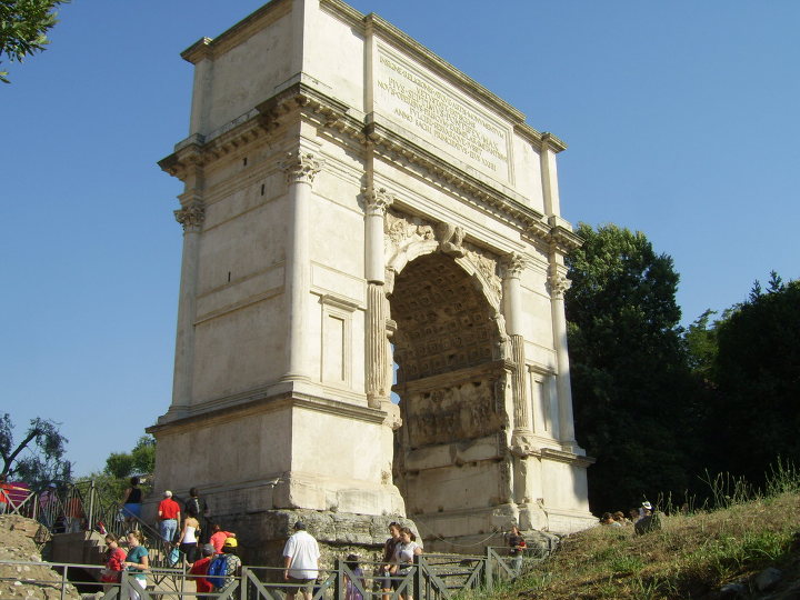 오른쪽 길로 티투스 개선문 을 지나는 데, 유대인들은 이 문으로 지나다니지 않는 것은