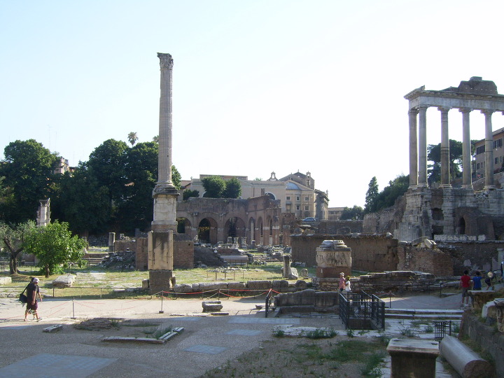 저 멀리 잔해더미 어딘가가 Curia ( 원로원 ) 일테고, 시저(카이사르) 가 칼을 맞으면서