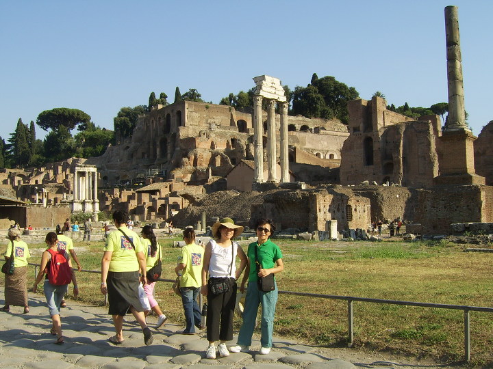 포로 로마노에서 빨간색 유니폼 을 입은 학생들이 유난히도 활달 하기에 서툰 영어