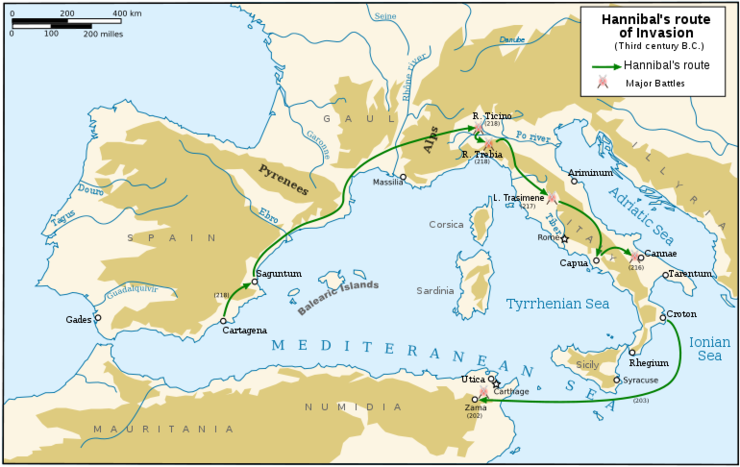 기원전 218년 한니발 은 스페인을 개척하여 얻은 재원으로 4만 6천명의 병력 을 가지고