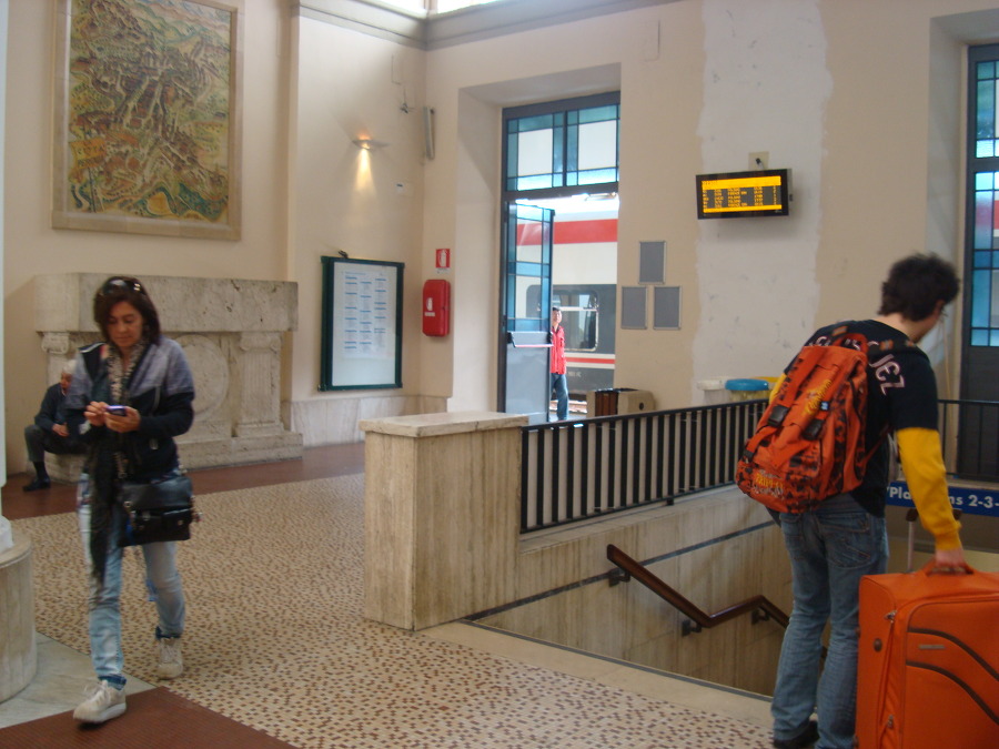 모니터를 확인하고는 페루자 로 가는 13시 44분 기차에 오르는데