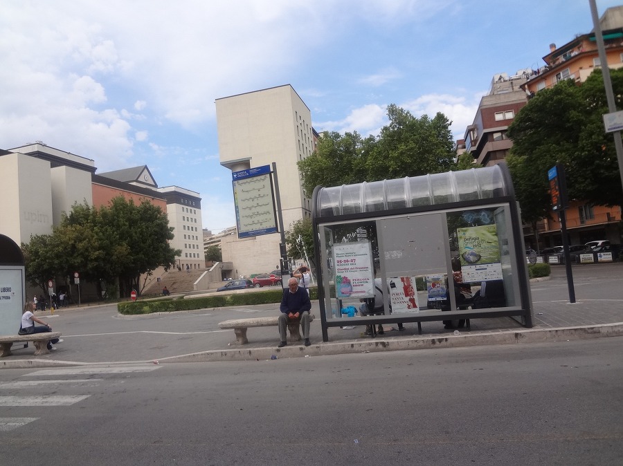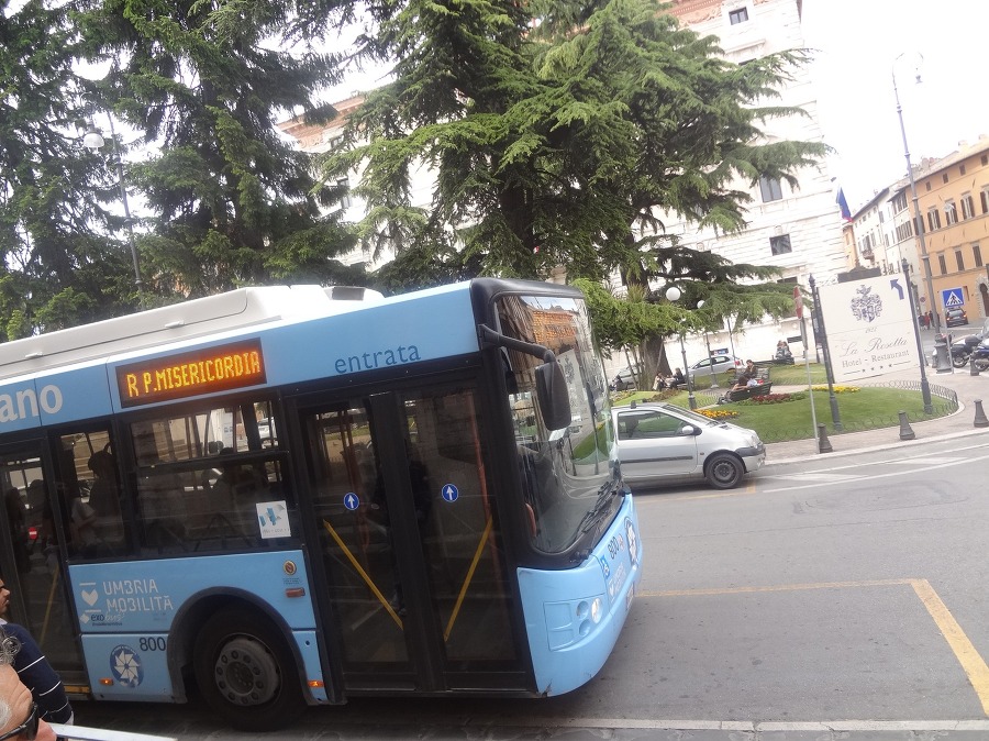페루자역 광장 에서 2유로 하는 R 버스 ( G 버스도 간다 ) 를 타고 언덕을