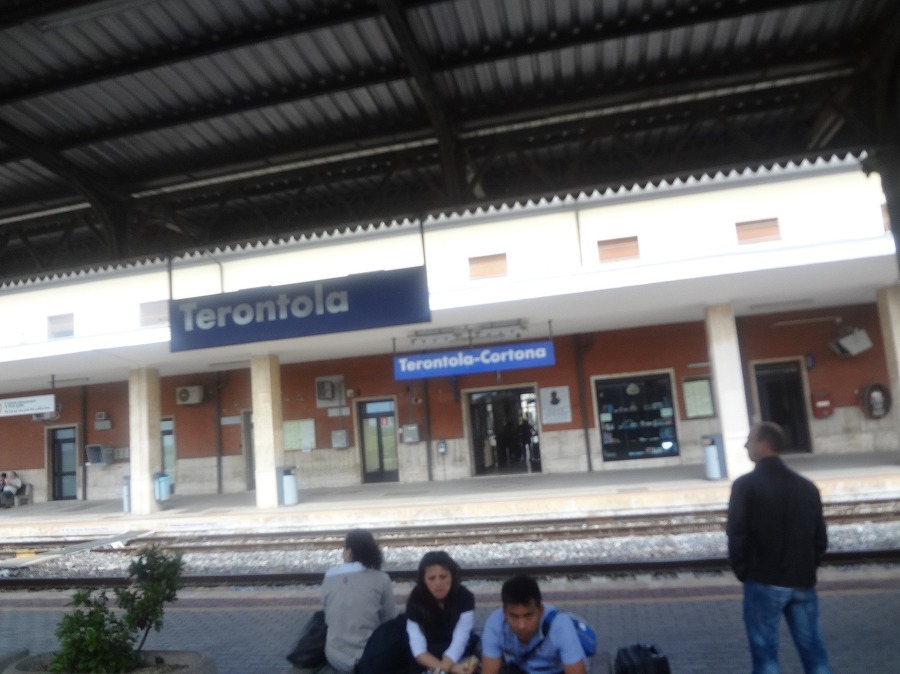 테론톨라 역 에 내려 사람들에게 페루자 로 가는 기차를 물으니