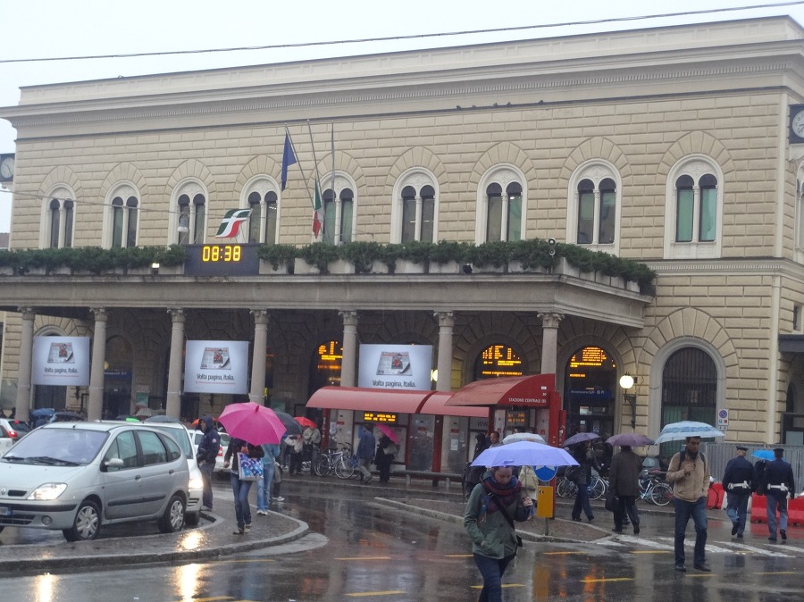그러고는 역에서 이슬비 가 내리는 Via dell'Indipendenza 거리를 걸어서