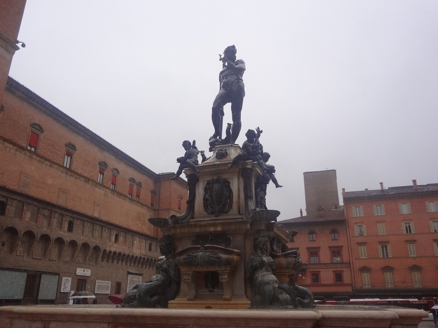 5월 21일 아침에 걸어서 볼로냐 의 마조레 광장에 도착해 넵튜누스 분수 와 시청사 미술관 에