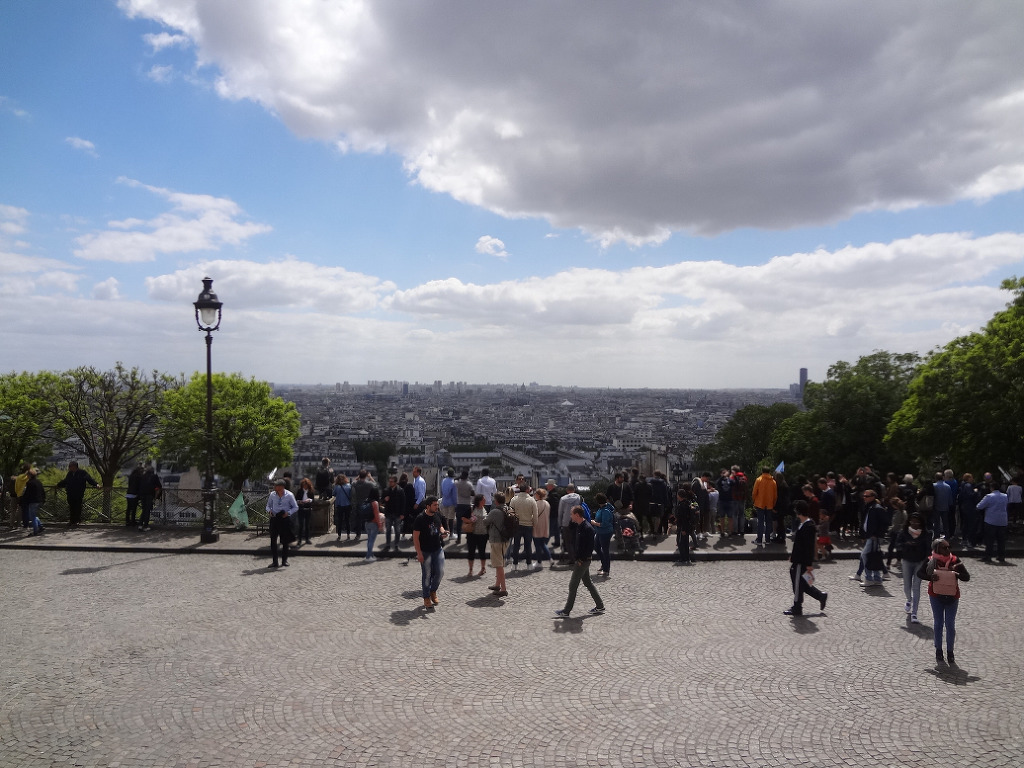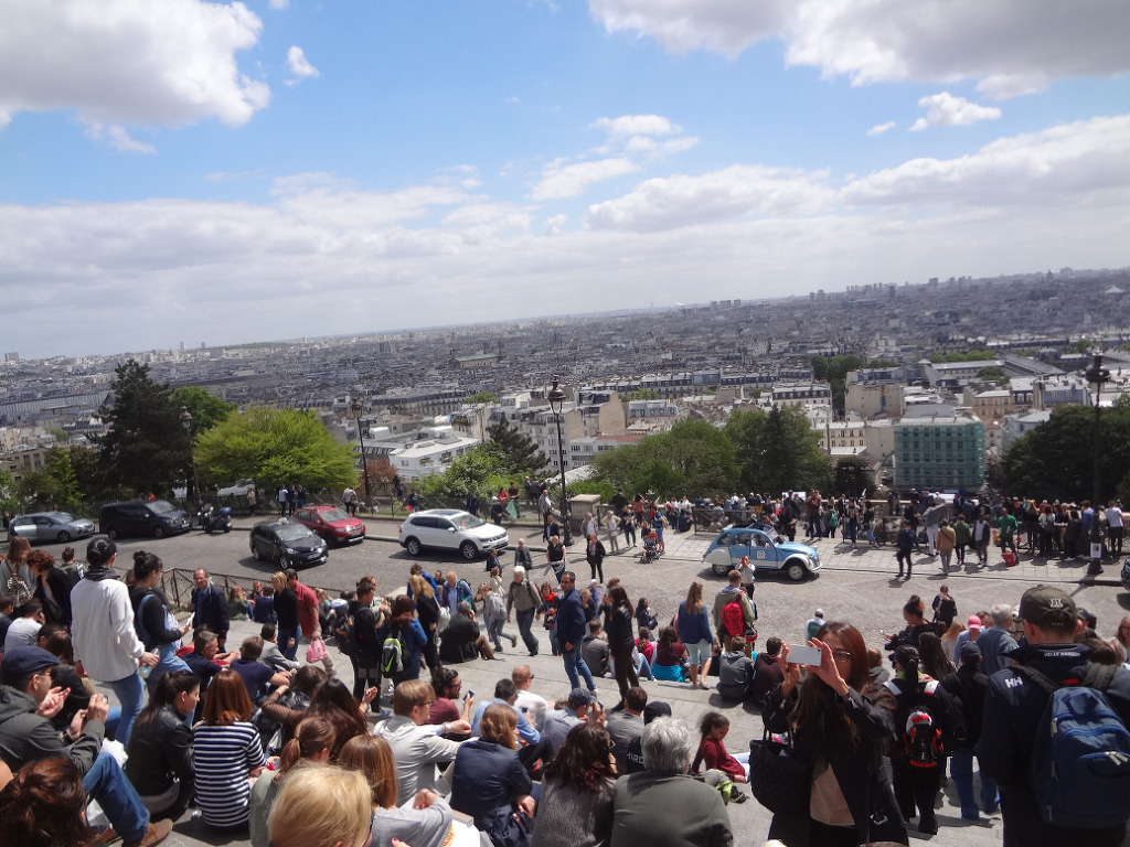 여행자들이 계단에 앉아 파리 시가지를 구경 하길래 우리도 앉아서 시가지 풍경을
