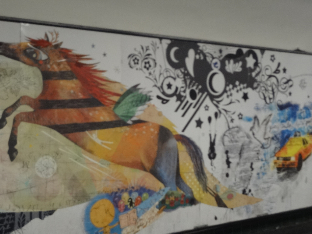 기마상이 서 있고... 뤽-올리비에르 메르송이 세계에서 가장 큰 모자이크를 만들었습니다.