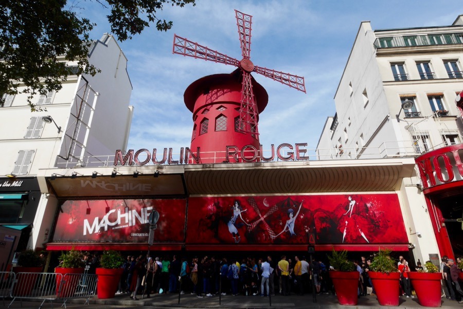 네거리에 그 유명한 물랭루주 가 자리하고 있는데 1889년에 문을 연 붉은 풍차 로 유명한