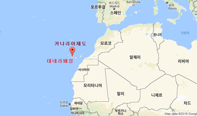 오늘은 스페인 남부 아프리카의 모로코 서쪽 바다 에 떠 있는 카나리아제도의 테네리페섬