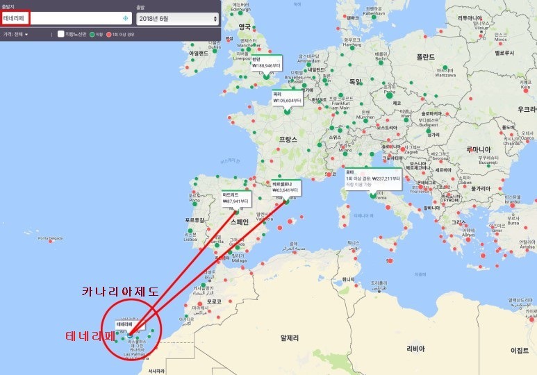 편도 63,000원 정도 하며 파리에서 테네리페 섬 으로 가는 가장 저렴한 국제 항공권
