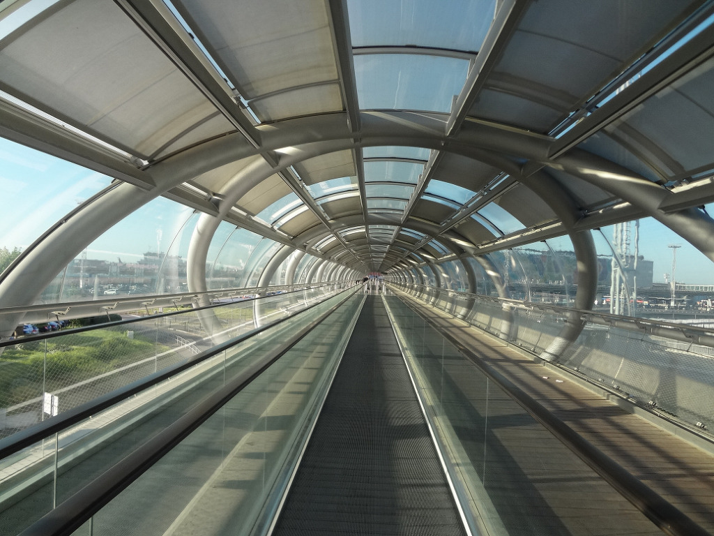 구름다리 같은 통로를 지나 오를리공항 남터미널 Orly South Airport 로