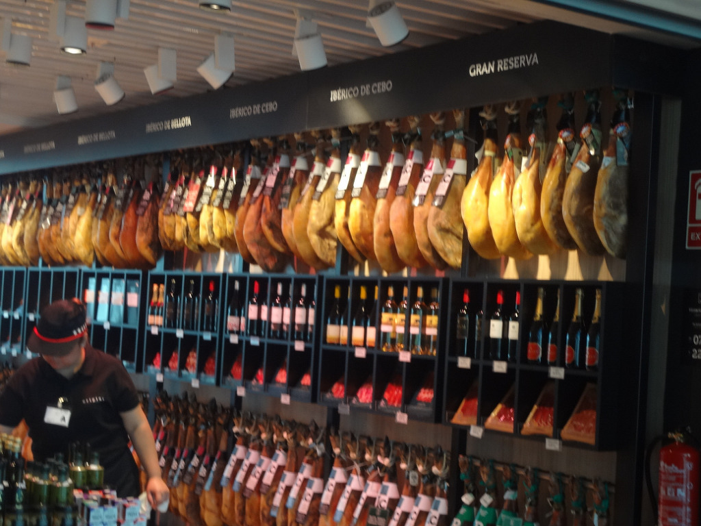 숍이나 식당을 불문하고 돼지 뒷다리 훈제 하몽 을 주렁주렁 달아놓고 파는게 인상적입니다.