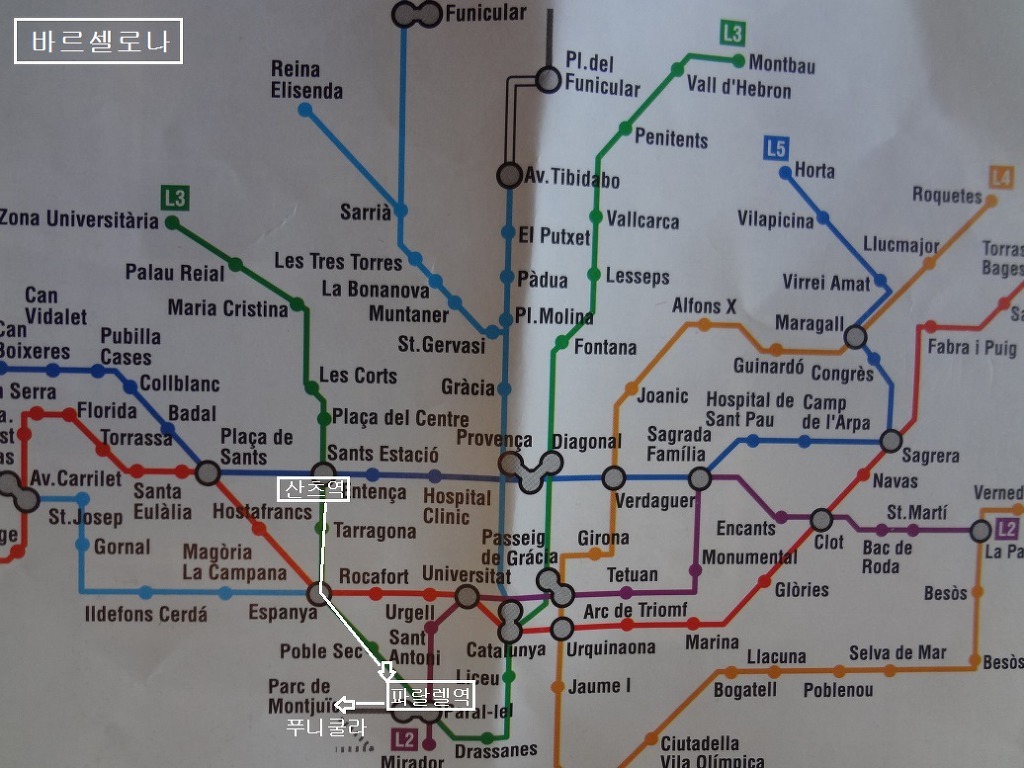 Montbau 방향 지하철을 타고는 4정거장째인 파랄렐역 Paral-Lel 에 내리는데....