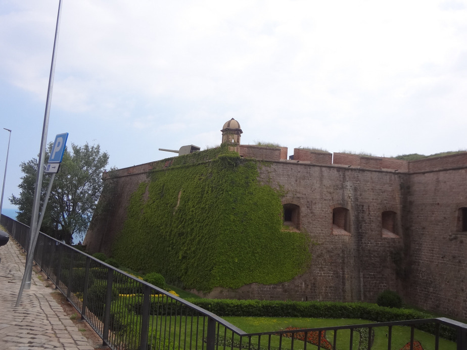 를 타고는 몬주익성역 에 내려 언덕길을 올라 해자에 놓인 다리를 건너 몬주익성