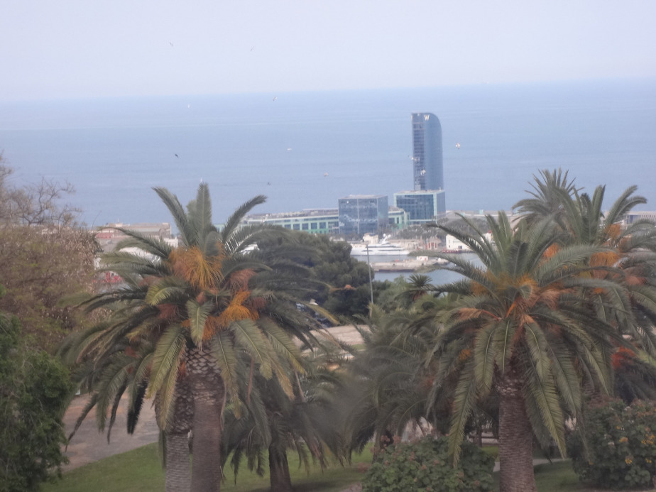 구경하다가 이윽고 일어나서 내려와 숲길을 지나 몬주익 공원 으로 걸어갑니다.