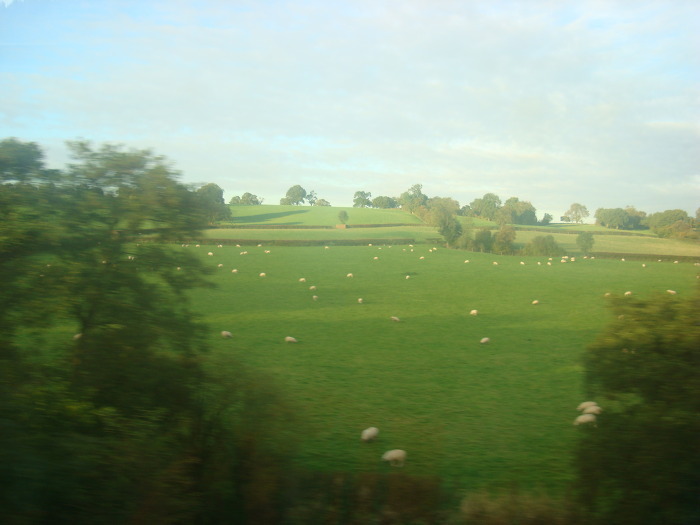 차창 밖으로 역시나 숲이 지나면 구릉과 초지 인 데, 소와 양을 방목