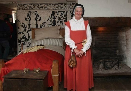 가죽과 장갑을 볼수 있으며 낡은 목조 계단 을 오르면 2층 에는 세익스피어가 사용했던