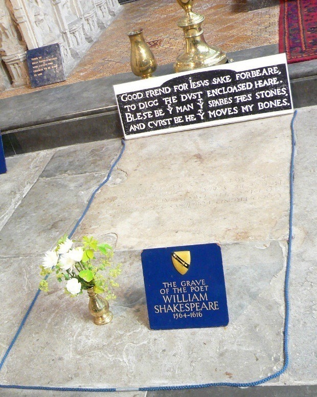 세익스피어의 묘지 는 교회 마당의 여러 묘지들 가운데 있는 것이 아니고 유럽의 교회