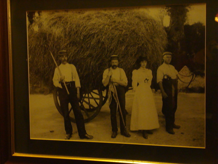 농촌에서 추수후 수레에 실은 농작물 앞에 선 "순한 얼굴의 옛사람들 사진" 이 걸려 있습니다.