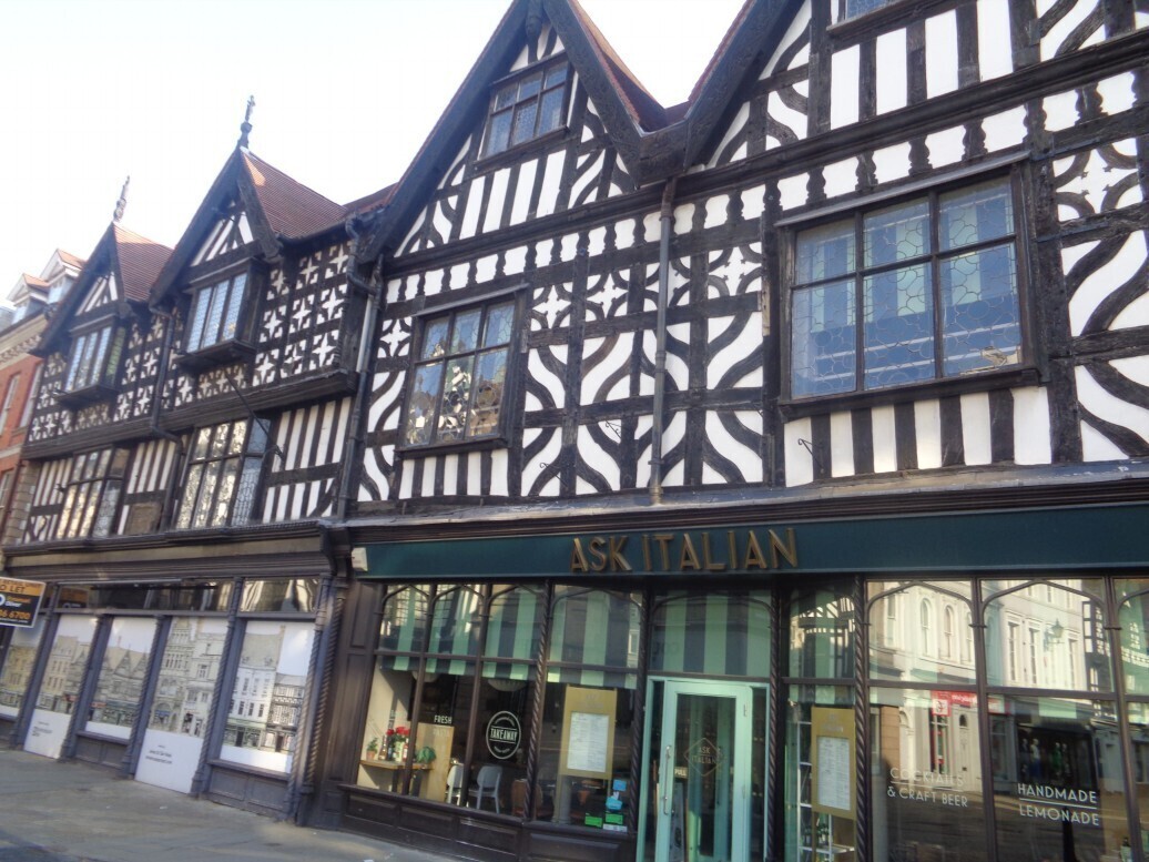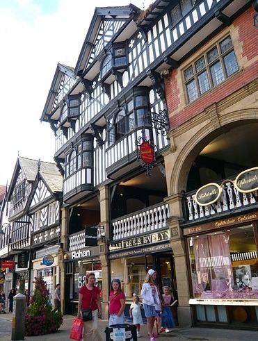 더 로우즈 The Rows 는 십자로 주위에 튜더 왕조 시대 양식의 건물 2층 부문에