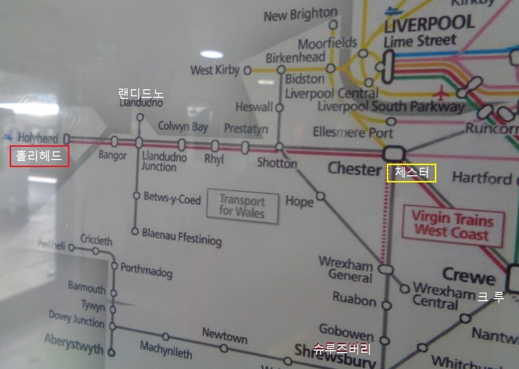 체스터 Chester 역에서 1인당 28.3 파운드를 주고 홀리헤드 Hoiyhead 행 기차표를 끊어 열차에 타니