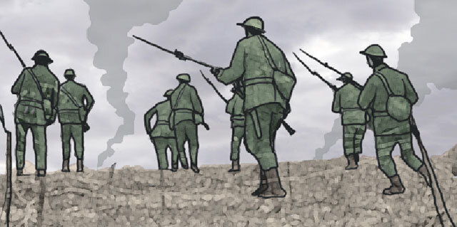 “호각 소리와 함께 돌격 이 시작되면 기관총의 십자화망이 병사들 을 휩쓸었다. 중대가
