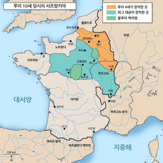 하지만 프랑스왕의 직할지는 소규모로 프랑스는 10여개의 제후국 으로 나뉘어 졌는