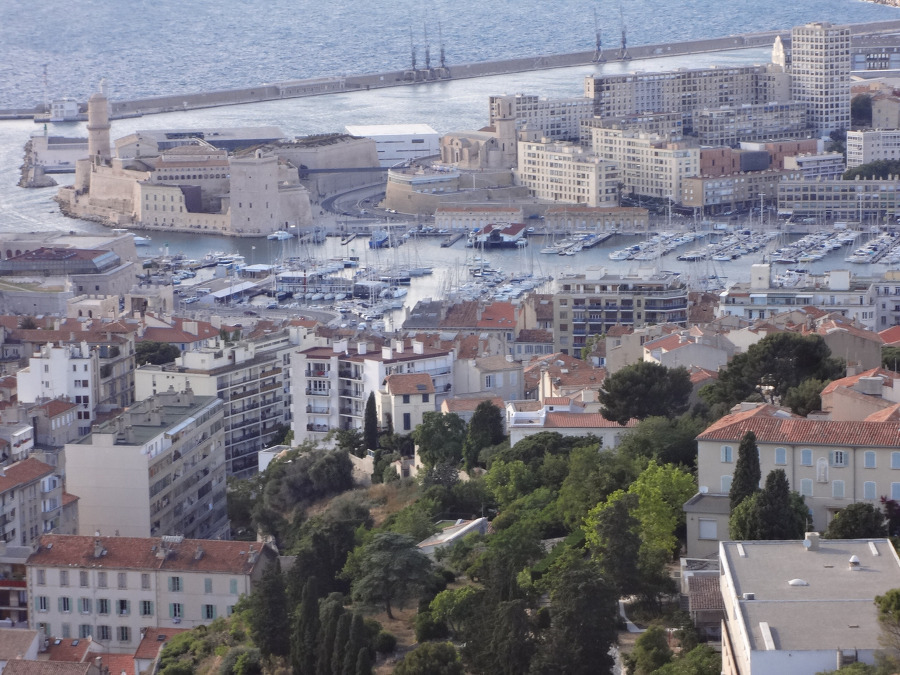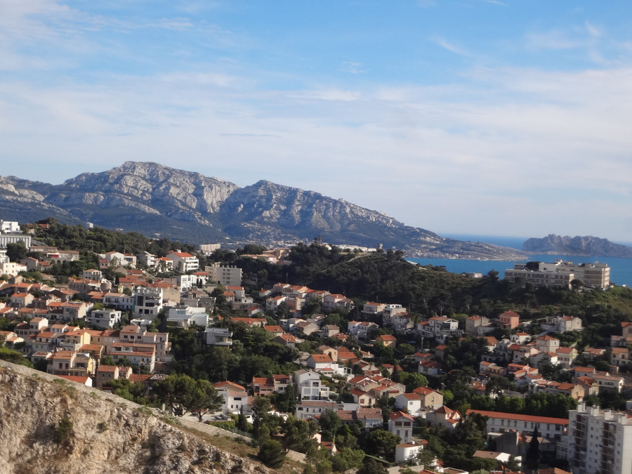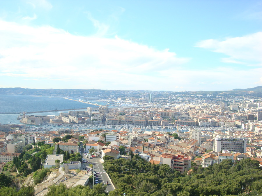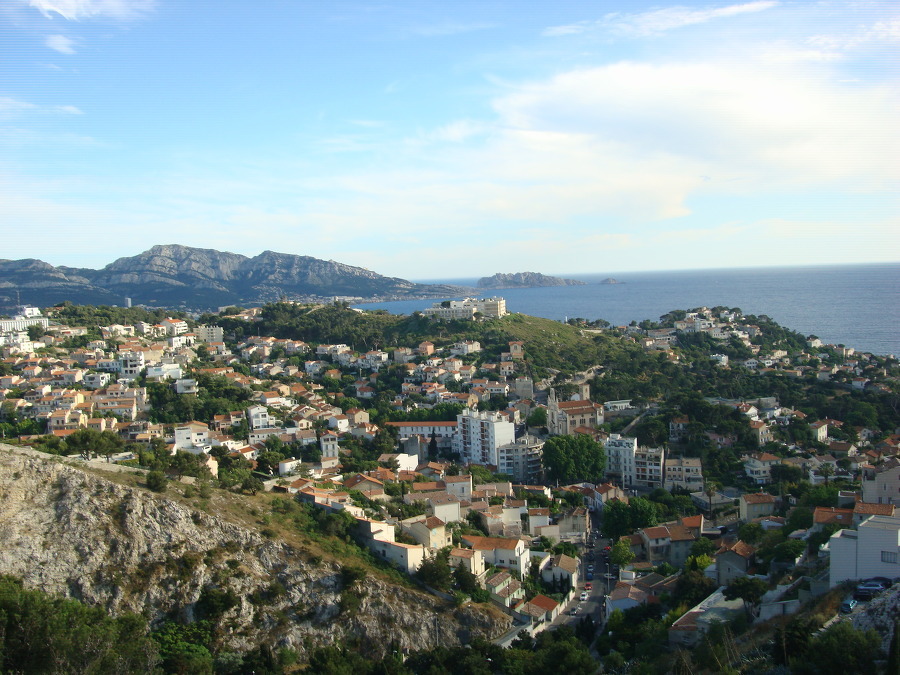 이 도시 마르세유 는 언덕에 숲이 있고 그 사이로 붉은 지붕을 인 집들이 보이니 이건 숲속에 지어진